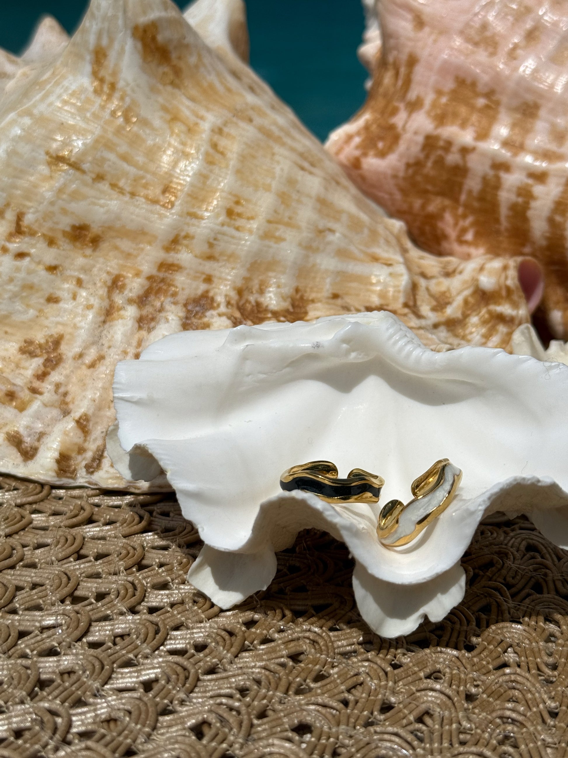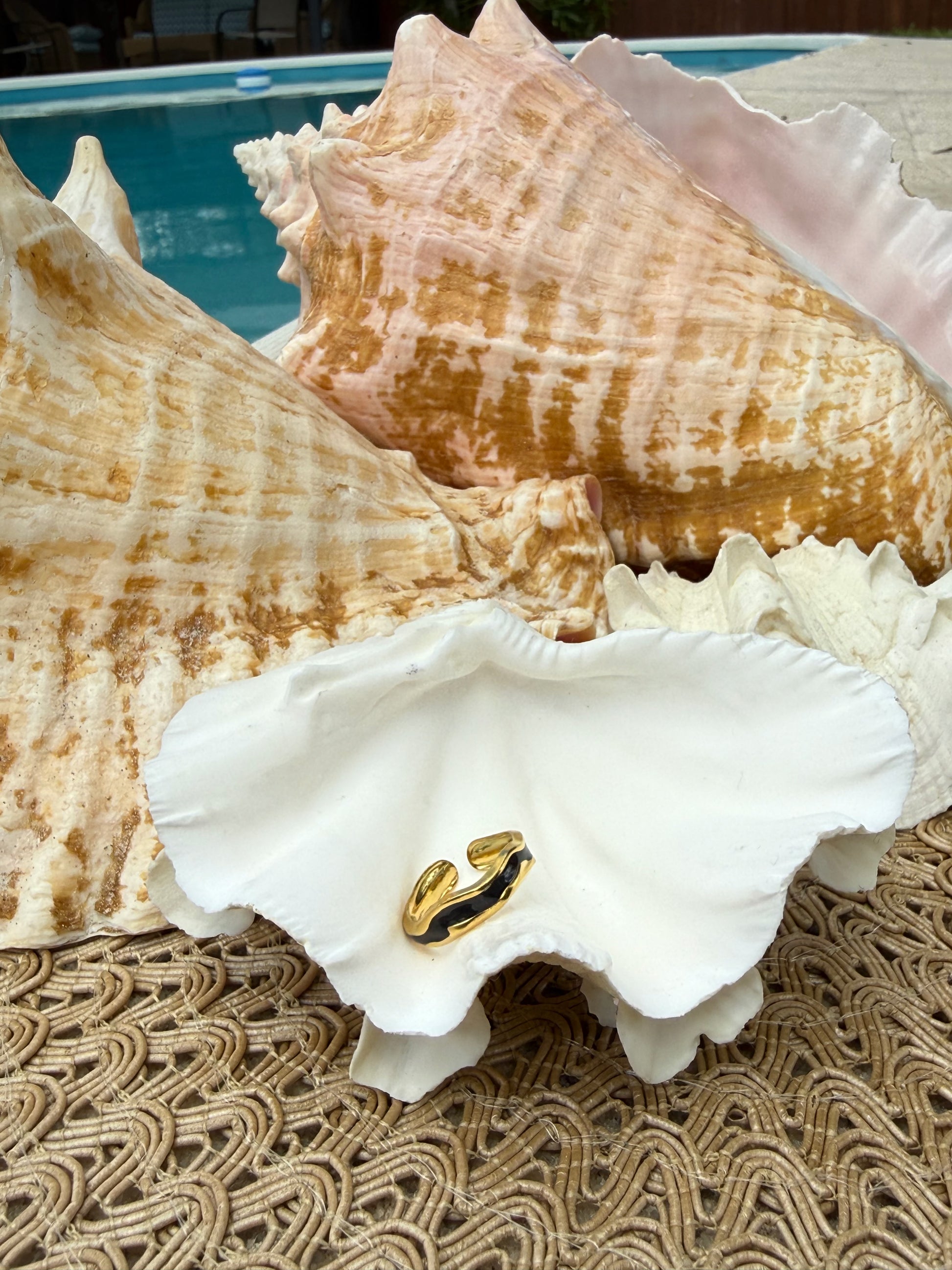 A golden curve inspired by waves meeting the warm shore, this flowing band catches the light like sun dancing on tide-washed sand. Effortless, organic, and made for everyday coastal living — from brunch by the bay to barefoot strolls on shell-flecked beaches.