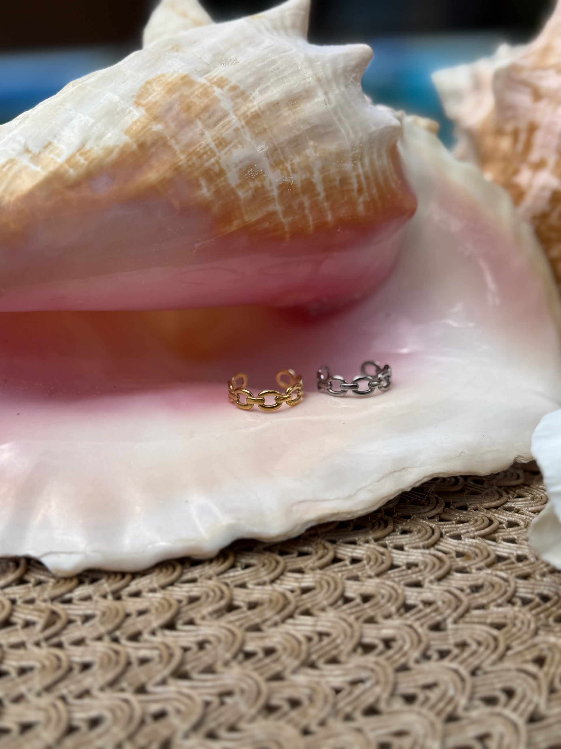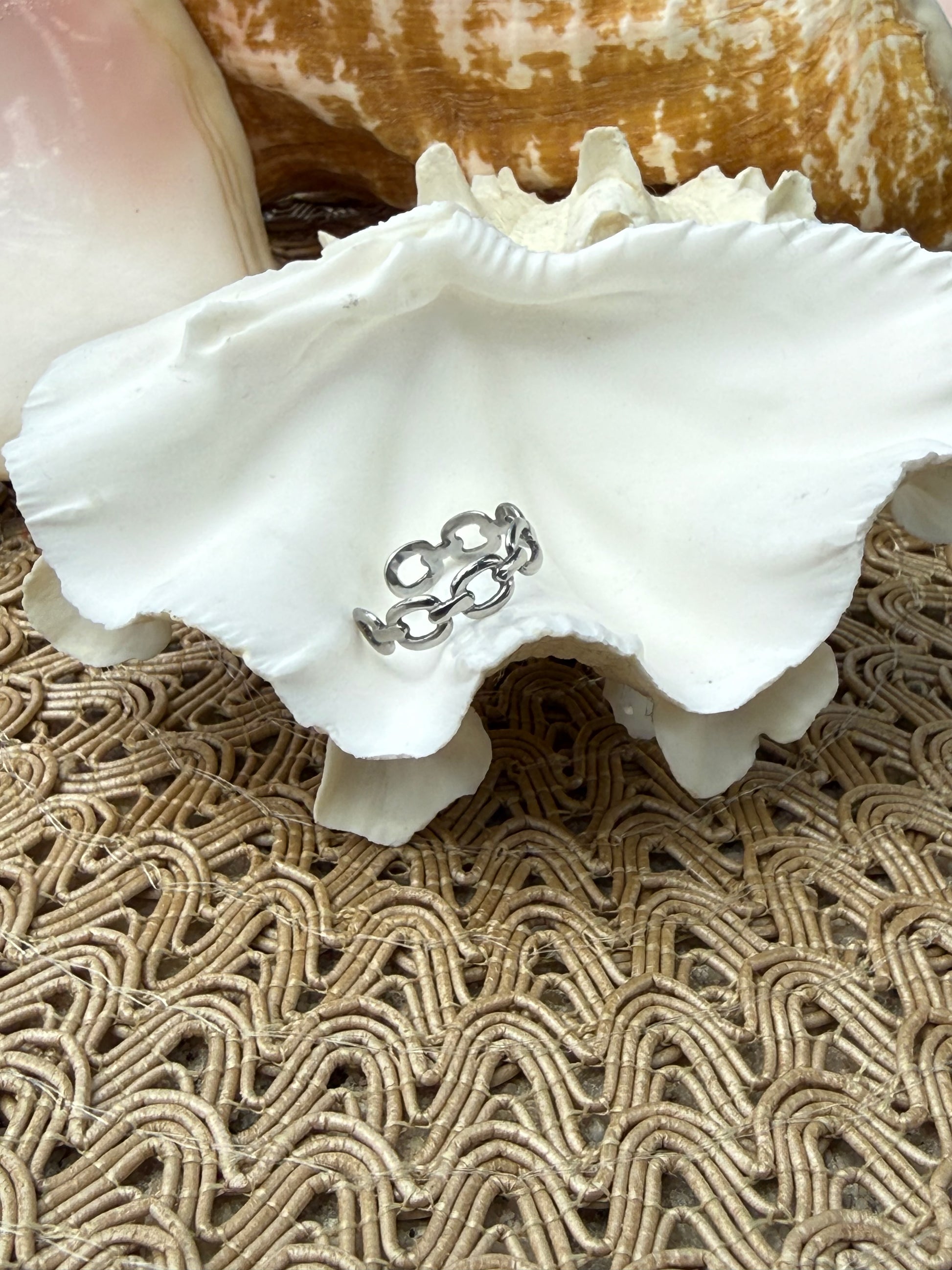 Inspired by sailor chain links and the effortless rhythm of the tides — this dainty band brings subtle edge and coastal ease. A modern, ocean-muse staple designed to layer, mix, and glow in the sun.