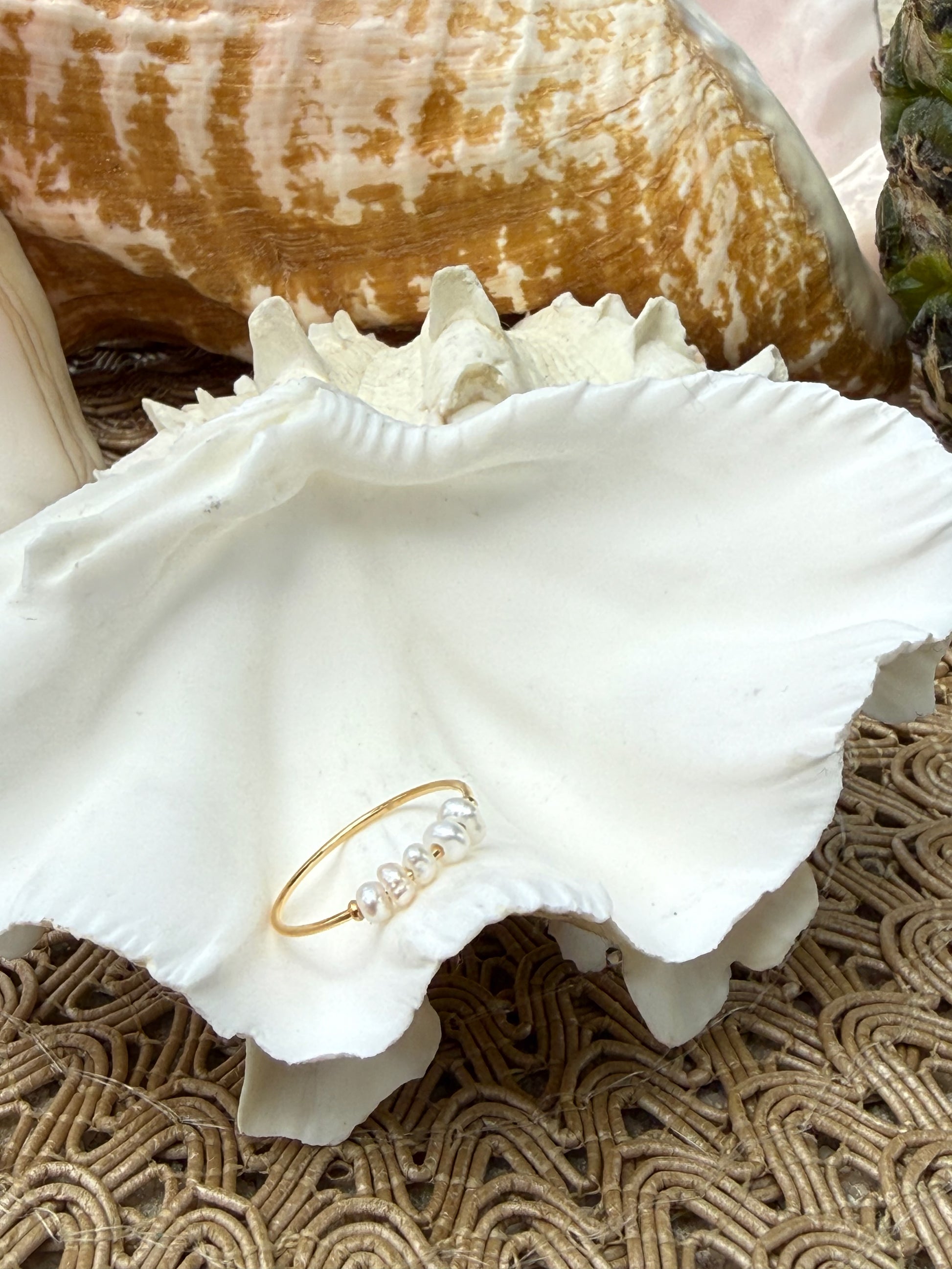 A golden band wrapped in pearly seashell curves—this ring feels like tiny treasures strung together by the sea.