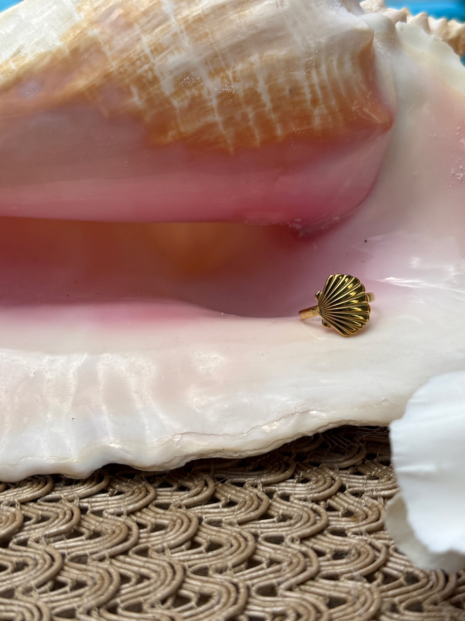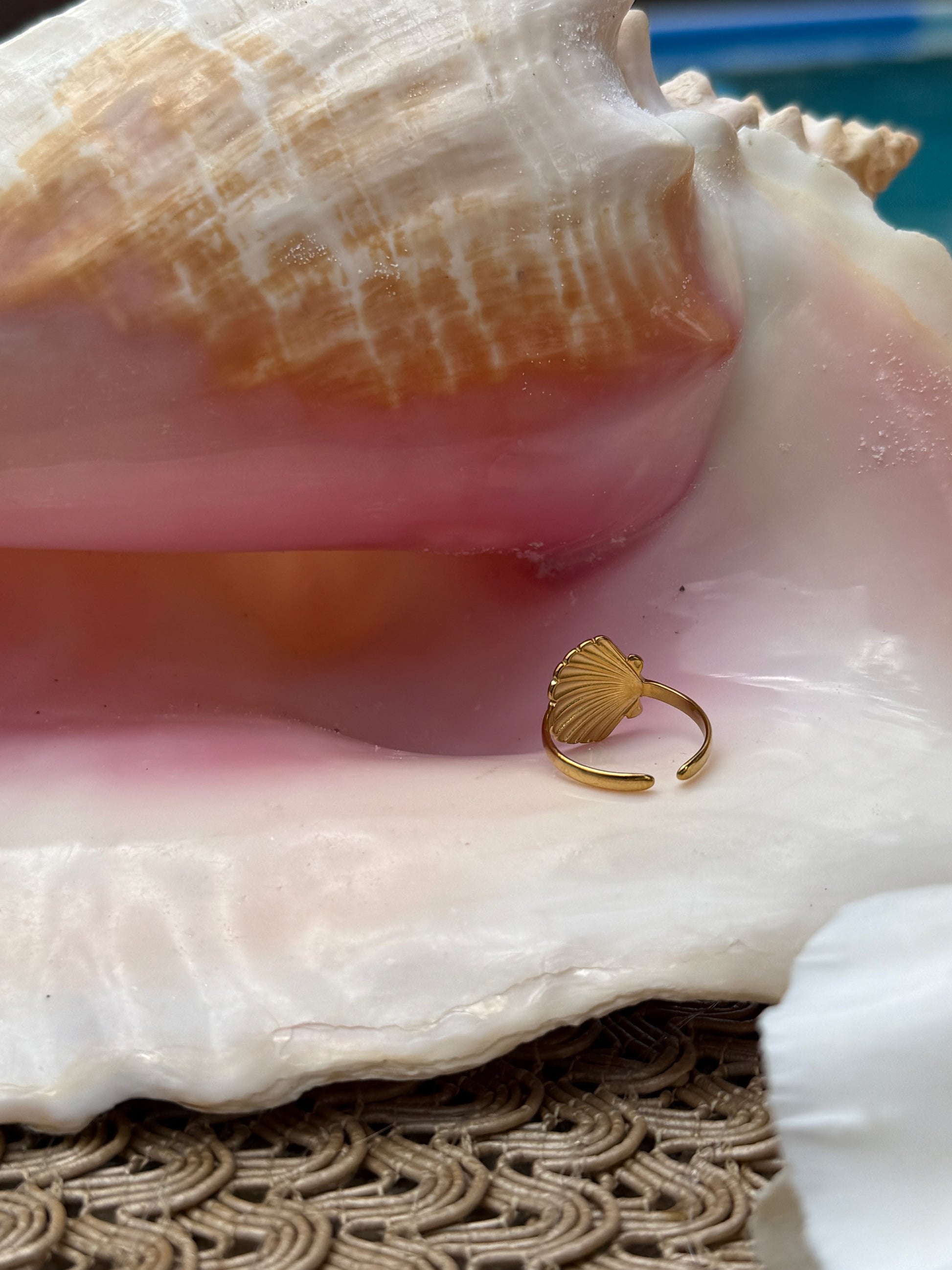 A golden scallop kissed by sun and shore, shaped like gentle lines etched by the tide. Lightweight, effortless, and forever coastal — made for salty hair, sandy skin, and days that feel like summer.