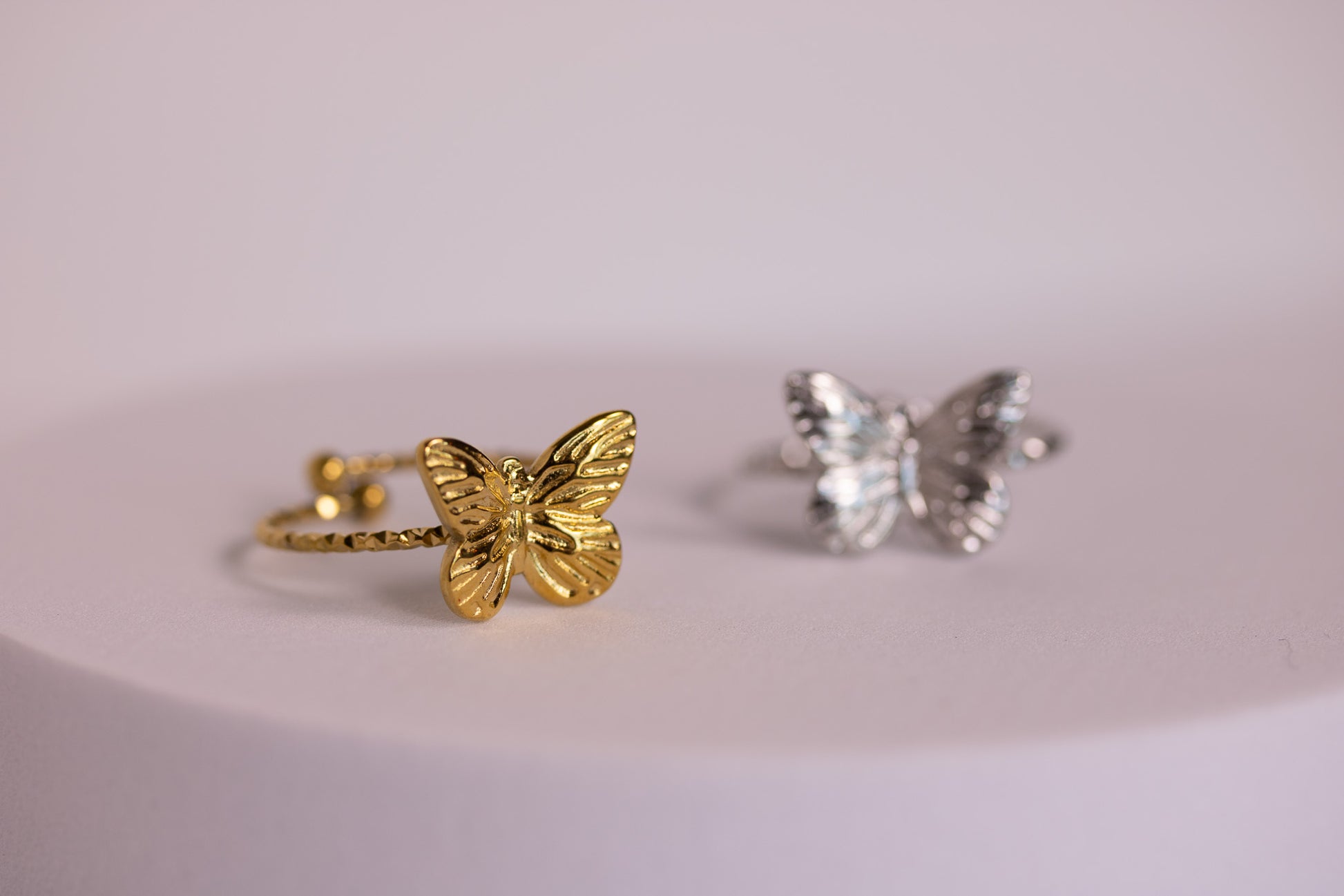 Inspired by the gentle flutter of coastal butterflies, the Butterfly Ring brings a soft shimmer to your everyday. The raised wing detailing catches the light beautifully, adding a breezy, nature-kissed glow to your stack.