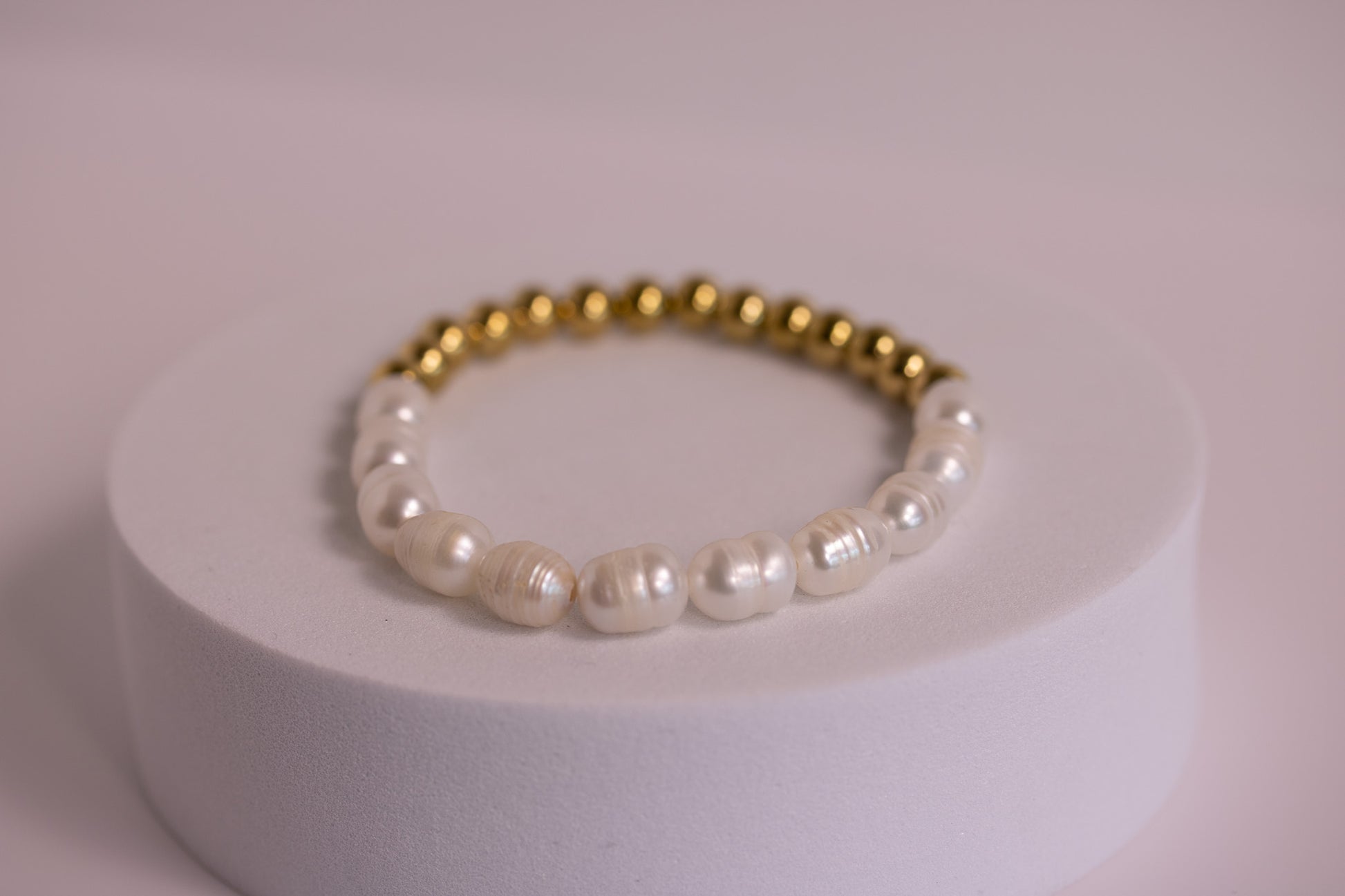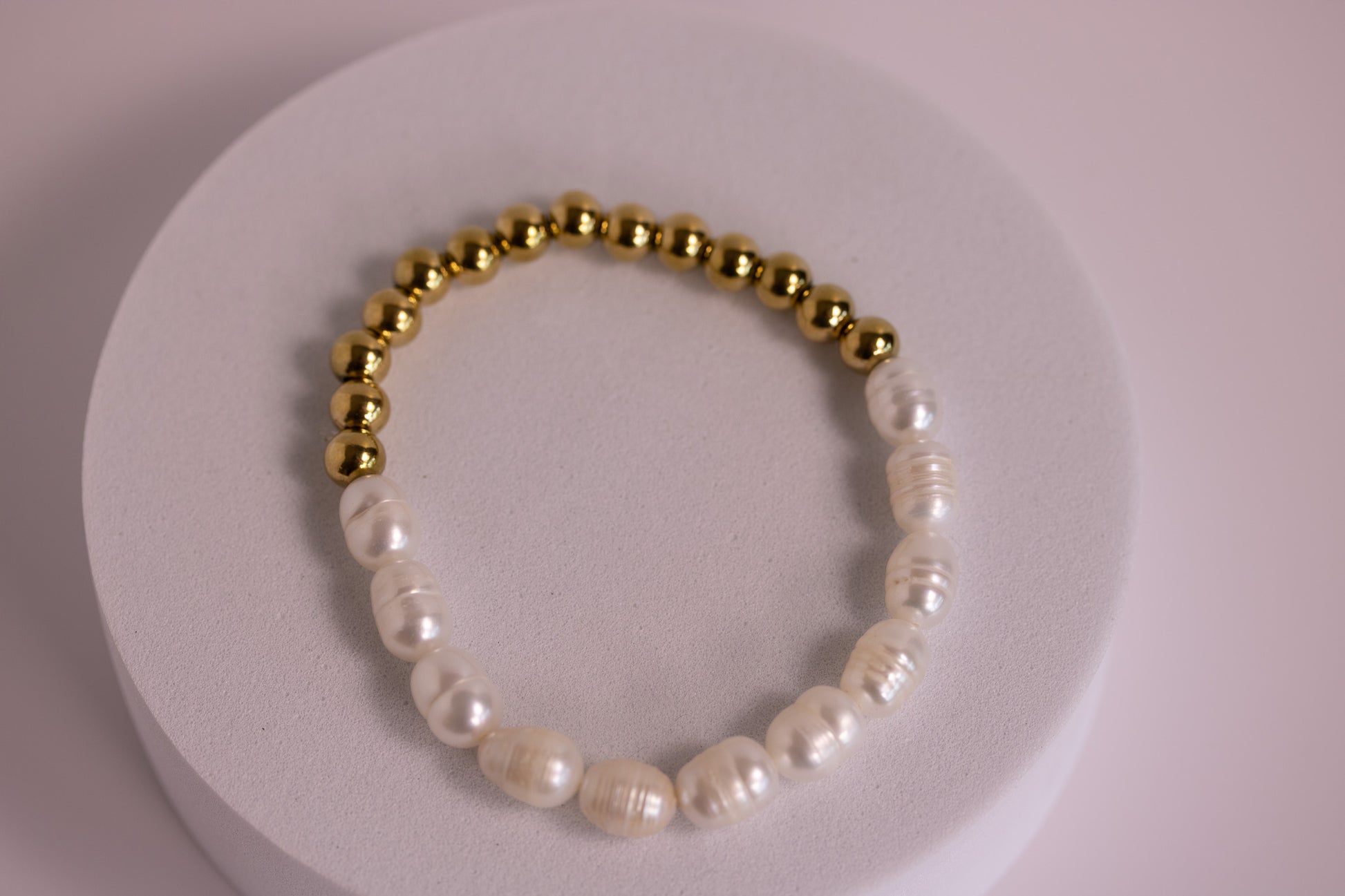 Meet the Golden Surf Pearl Bracelet — a warm, shoreline-inspired piece that blends radiant gold beads with organically shaped freshwater-style pearls. It feels like sunlit tides in jewelry form: soft, glowing, and effortlessly elegant.